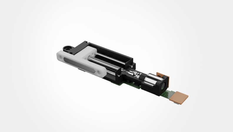 項(xiàng)目介紹:兆威胰島素筆驅(qū)動(dòng)系統(tǒng)采用了步進(jìn)電機(jī),給定控制信號(hào)與馬達(dá)尾端光柵形成閉環(huán)控制,通過平行傳動(dòng)的齒輪將轉(zhuǎn)矩提供到絲桿上,絲桿的轉(zhuǎn)動(dòng)帶動(dòng)螺母直線運(yùn)動(dòng),從而推動(dòng)注射器進(jìn)行胰島素注射。